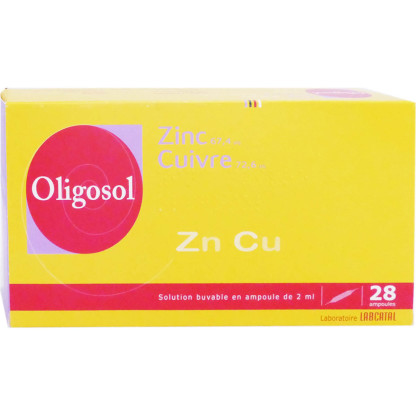 Oligosol Zinc Cuivre boîte de 28 ampoules à prix discount dans votre parapharmacie en ligne, les minéraux physiologiques indispensables à prix discount. Médicament non soumis à prescription médicale.