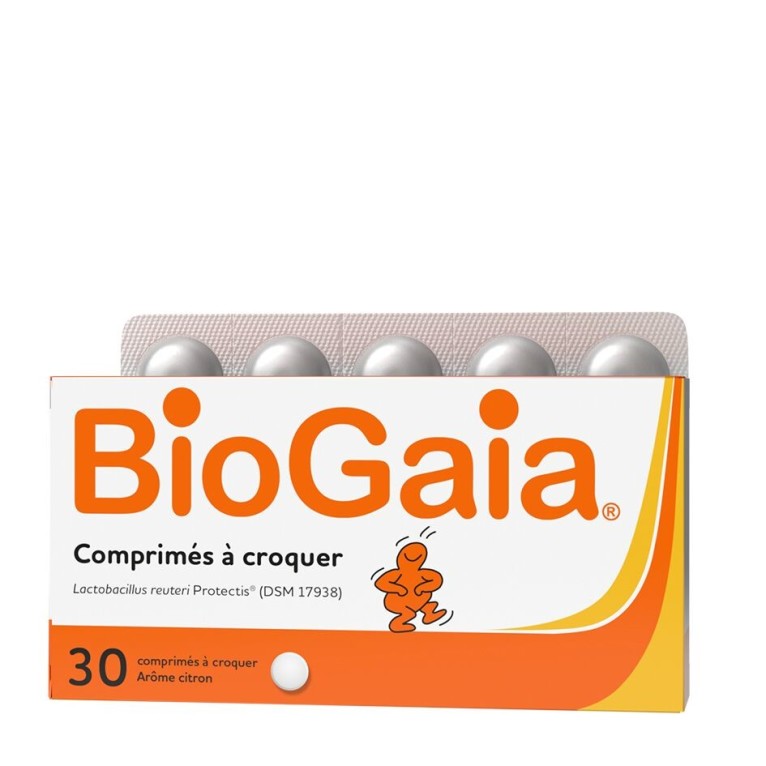 BioGaia® Comprimés à croquer est un complément alimentaire formulé à base de Lactobacillus reuteri Protectis®, une souche de ferments lactiques qui a fait l’objet à ce jour de plus de 100 études cliniques, activement recommandée pour les adultes et les enfants en âge de croquer des comprimés. Disponible également sous forme de gouttes. Excellente tolérance dès la naissance, compatible avec l’allaitement.