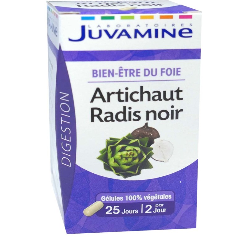 JUVAMINE BIEN-ÊTRE DU FOIE est conditionné sous forme de gélules 100% végétales spécialement formulées à base d’Artichaut qui contribue au bon fonctionnement du système digestif et hépatique. La formule est complétée par du Radis noir, la plus ancienne variété de radis cultivée par l’homme. JUVAMINE BIEN-ÊTRE DU FOIE contient 50 gélules et un système d’ouverture doseur, un geste pratique à adopter au quotidien.