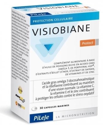 VISIOBIANE Protect du laboratoire PILEJE à prix discount, en vente dans votre parapharmacie en ligne discount, un complément alimentaire conçu à partir d’acide gras oméga 3 DHA et de vitamine B2 qui contribuent au maintien d’une vision normale.