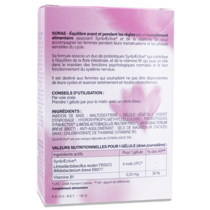 SORAE EQUILIBRE AVANT ET PENDANT LES REGLES 30 GELULES est disponible en vente en ligne à prix discount sur Pharmashopdiscount.