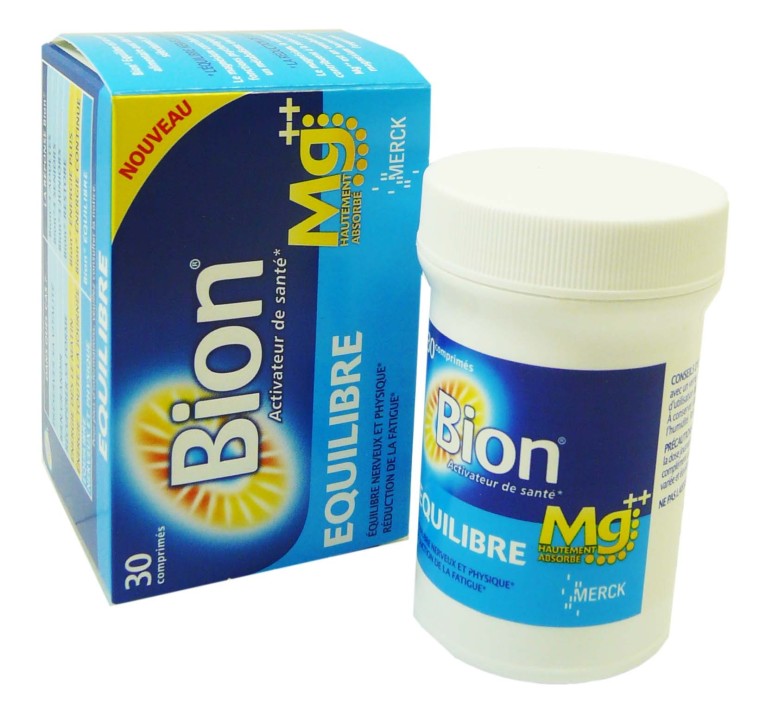 BION 3 Equilibre Magnésium de MERCK en comprimés associe 11 vitamines dont les vitamines B6 et la vitamine C, 4 minéraux tel que le magnésium et 3 ferments. Dans cette formule les vitamines B6 et C contribuent à réduire la fatigue et le magnésium participe au maintien des fonctions psychologiques normales et à un métabolisme énergétique normal. Le fer quant à lui vient compléter cette formule et aide également à réduire la fatigue.