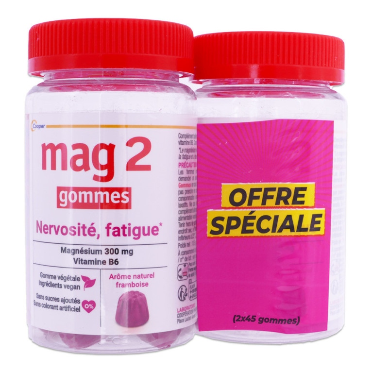 MAG 2 Gommes Nervosité, Fatigue 2X45 Gommes discount de COOPER, le complément alimentaire en gommes fruitées à base de Magnésium, et vitamines B6, dans votre parapharmacie en ligne à prix discount