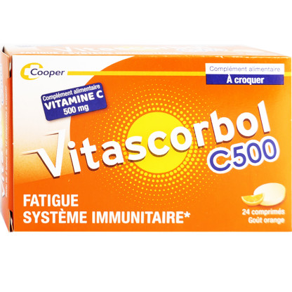 VITASCORBOL C500 discount des laboratoires COOPER, le complément alimentaire en comprimés à croquer, à base de Vitamine C avec édulcorants, à prix discount dans votre parapharmacie en ligne. Pour Adultes