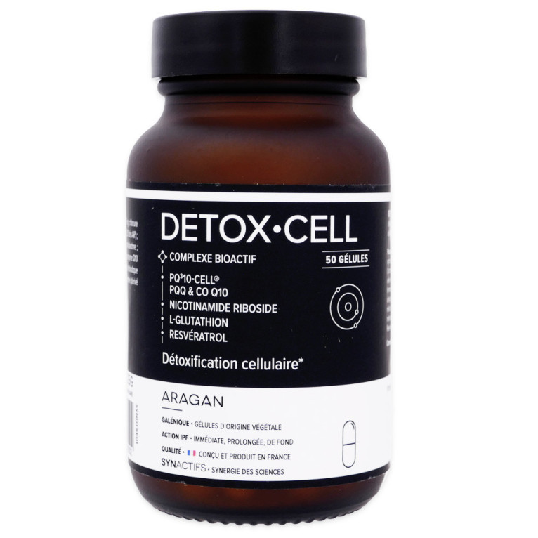 Le laboratoire Aragan propose une formule innovante avec le complexe PQ³10-CELL®, qui associe la PQQ et la coenzyme Q10. Avec son complexe novateur PQ³10-CELL® combinant PQQ et coenzyme Q10, cette formule exceptionnelle revitalise les cellules et facilite l'élimination des toxines. Renforcé par du nicotinamide riboside, du L-glutathion et du resvératrol, DETOX•CELL soutient efficacement les processus antioxydants et de détoxication cellulaire, encourageant un métabolisme actif et sain.