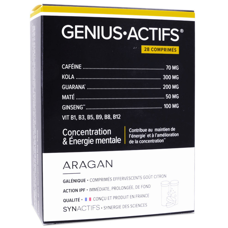 ARAGAN GENIUS ACTIFS CONCENTRATION & ENERGIE MENTALE 28 COMPRIMÉS est disponible en vente en ligne à prix discount sur Pharmashopdiscount.