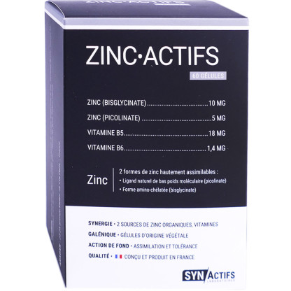Zinc Actifs à prix discount de SYNACTIFS, le complément alimentaire qui associe du Zinc aux vitamines B5 & B6, dans votre parapharmacie en ligne à prix discount.