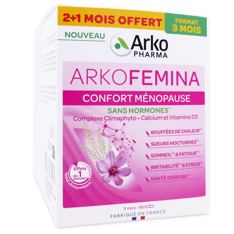 ARKOPHARMA ARKOFEMINA CONFORT MÉNOPAUSE 180 GÉLULES est disponible en vente en ligne à prix discount sur Pharmashopdiscount.