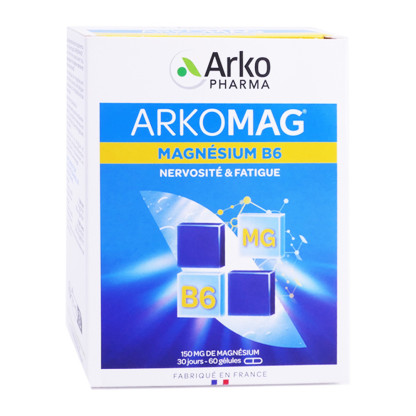 ARKOPHARMA est un laboratoire crée par le docteur Max Rombi en 1980. Il développe pour la première fois les célèbres Arkogélules à base exclusivement d’extraits de plantes. Fort de ce succès, le laboratoire innove et conçoit des compléments alimentaires pour aider au bien être du quotidien (articulation, transit, beauté de la peau...). Magnésium Vitamine B6 est un complément alimentaire à base de magnésium marin et de vitamine B6. Le magnésium contribue au fonctionnement normal de la fonction cognitive. Il soutient également le fonctionnement musculaire normal. Il participe avec la vitamine B6 à la réduction de la fatigue et au fonctionnement normal du système nerveux.