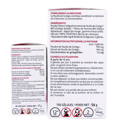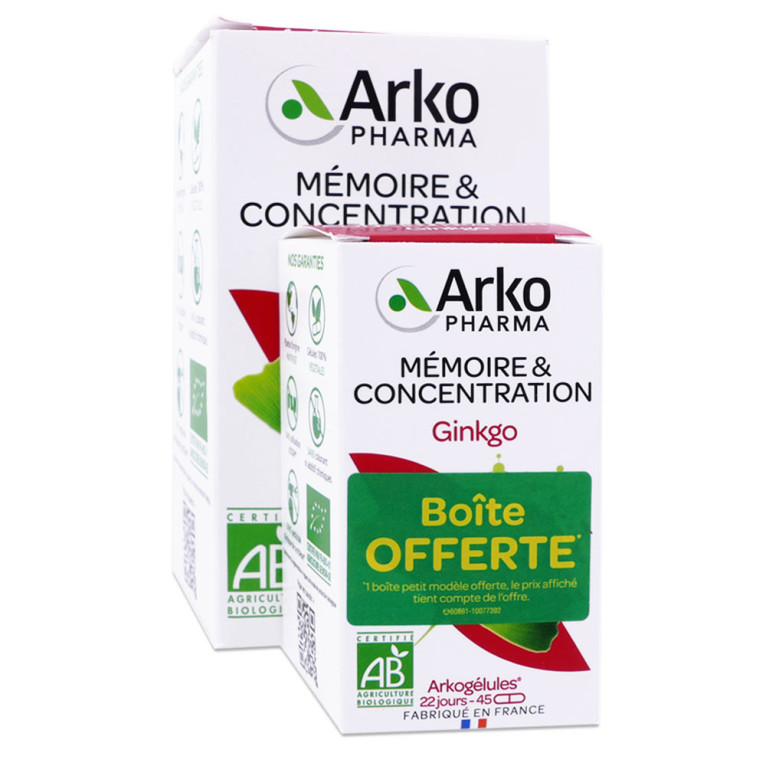 ARKOPHARMA BIO GINKGO MEMOIRE ET CONCENTRATION 150+ 45 GÉLULES est disponible en vente en ligne à prix discount sur Pharmashopdiscount.