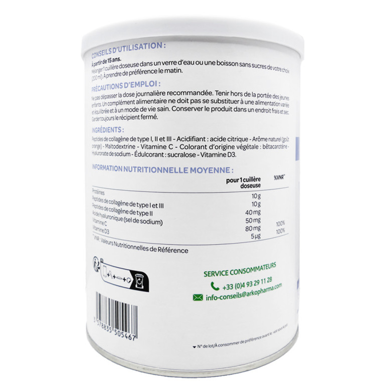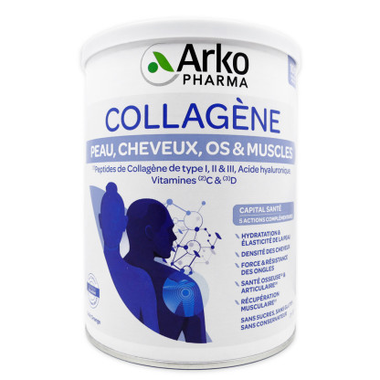ARKOPHARMA COLLAGÈNE PEAU CHEVEUX OS & MUSCLES 260G : un complément alimentaire à base de collagène hydrolysé, en vente en ligne sur le site de votre parapharmacie à prix discount. Offrez à votre corps le soutien dont il a besoin pour maintenir la santé de votre peau, de vos cheveux, de vos os et de vos muscles.A
