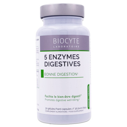 BIOCYTE 5 ENZYMES DIGESTIVES 30 GELULES est disponible en vente en ligne à prix discount sur Pharmashopdiscount.