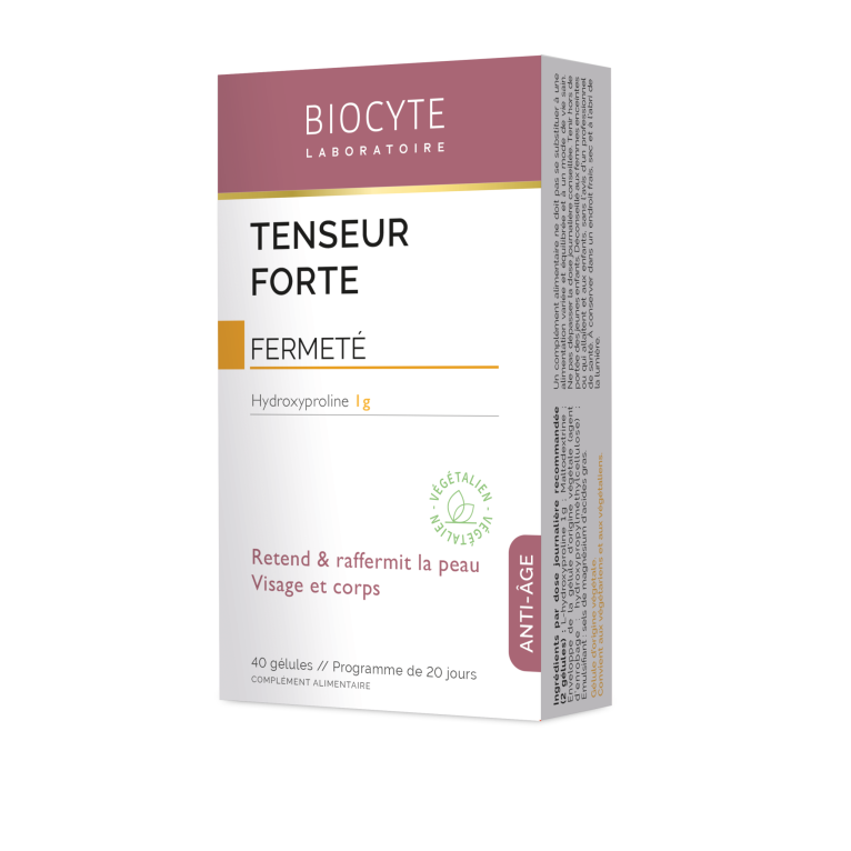 Tenseur forte de BIOCYTE, le complément alimentaire à base d'Hydroxyproline pour une peau retendu et raffermie, dans votre parapharmacie en ligne à prix discount.