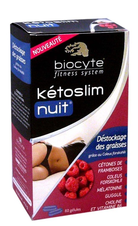 La gamme MINCEUR de BIOCYTE à base d’actifs naturels aide l’organisme à perdre et équilibrer le poids dans une démarche minceur. Composé d’ingrédients 100% naturels brevetés (cétones de framboise, coleus forskohlii, choline), vitamine B6, guggul et mélat qui est l’hormone du sommeil, Ketoslim Nuit de BIOCYTE va aider à brûler les graisses, réguler le métabolisme lipidique et énergétique normal, et diminuer le temps d’endormissement. Jour après jour la taille s’affine et le poids diminue et se stabilise.