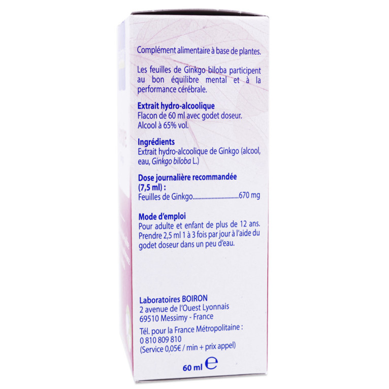 BOIRON MÉMOIRE GINKGO 60ML est disponible en vente en ligne à prix discount.