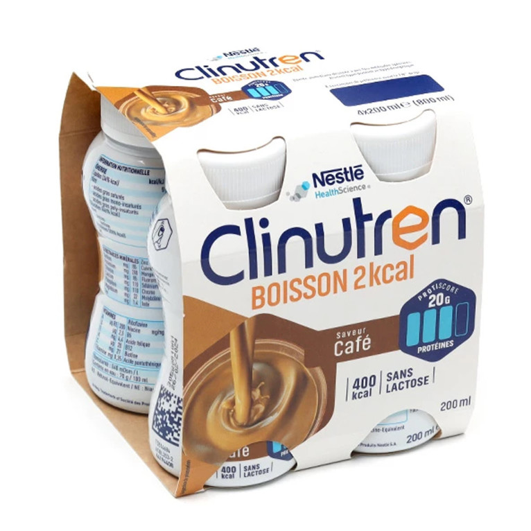 CLINUTREN BOISSON 2KCAL SAVEUR CAFE 4X200ML : Découvrez cette boisson lactée délicieuse et nutritive, en vente en ligne sur le site de votre parapharmacie à prix discount, idéale pour répondre aux besoins nutritionnels des patients adultes en cas de dénutrition ou en prévention de dénutrition.