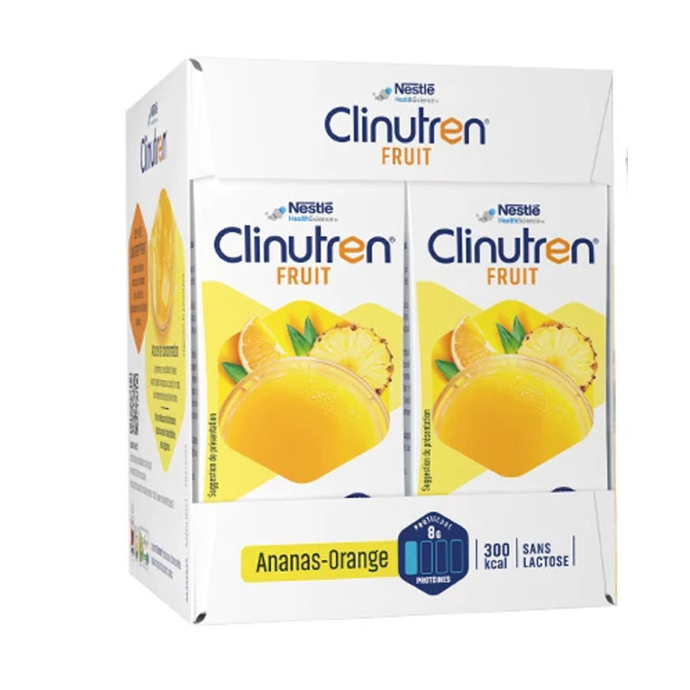 CLINUTREN FRUIT ANANAS ORANGE 4X200ML : une solution nutritive délicieuse en vente en ligne, sur le site de votre parapharmacie à prix discount. Ce produit est spécialement conçu pour répondre aux besoins des personnes en dénutrition, offrant un apport calorique et nutritionnel adapté.