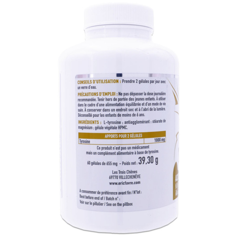 Le laboratoire Eric Favre, reconnu pour son expertise en nutrition, propose ce complément à base de L-Tyrosine, un acide aminé essentiel.