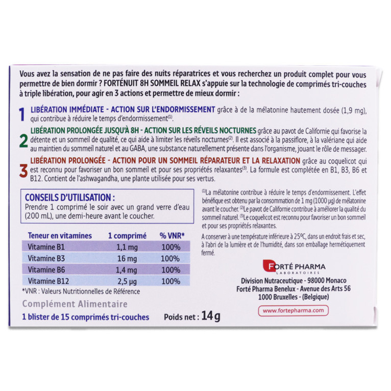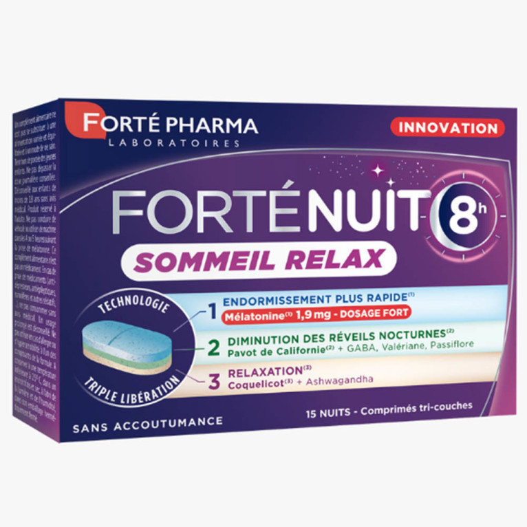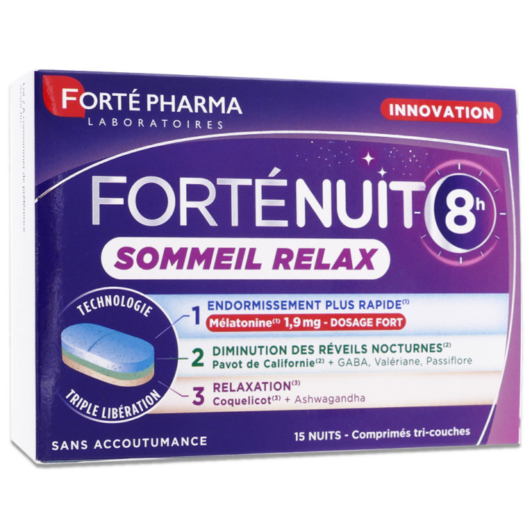 FORTENUIT 8H SOMMEIL RELAX 8H 15 COMPRIMES TRI-COUCHES est disponible en vente en ligne à prix discount sur Pharmashopdiscount.
