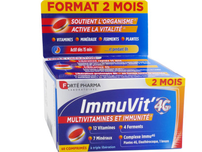 IMMUVIT’ 4G à prix discount de FORTE PHARMA, le complément alimentaire à base de vitamines, d'extraits de plante, de minéraux et ferments lactiques à l'action immédiate et prolongée, dans votre parapharmacie en ligne.