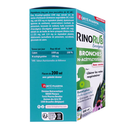 FORTE PHARMA RINORUB BRONCHES EUCALYPTUS 200ML est disponible en vente en ligne sur le site de votre parapharmacie à prix discount.