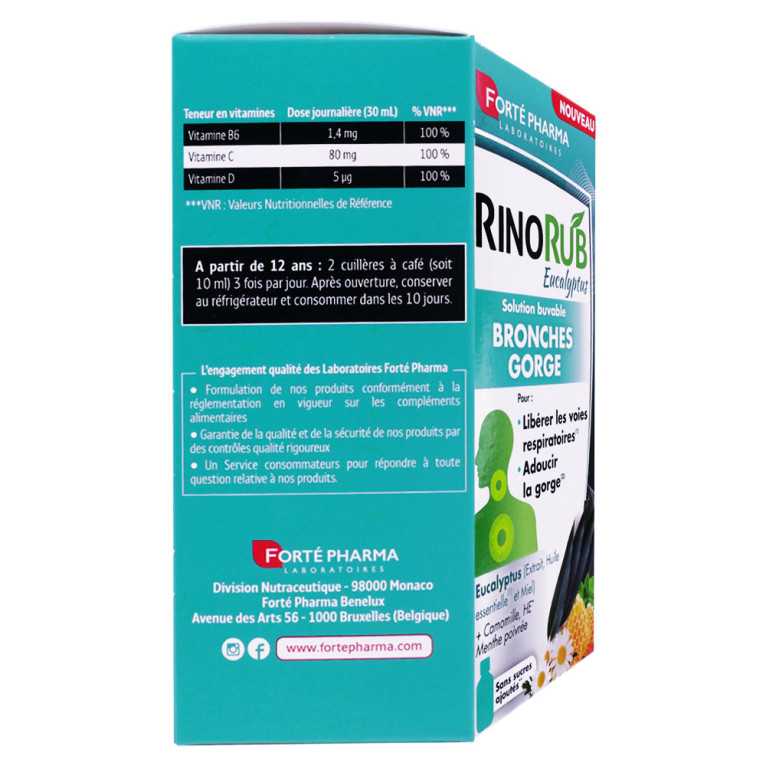 N'attendez plus pour découvrir les bienfaits de FORTE PHARMA RINORUB BRONCHES GORGE EUCALYPTUS et offrez-vous un moment de confort au quotidien !
