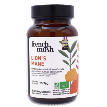 FRENCH MUSH LION'S MANE BIO 56 GÉLULES est disponible en vente en ligne à prix discount sur Pharmashopdiscount