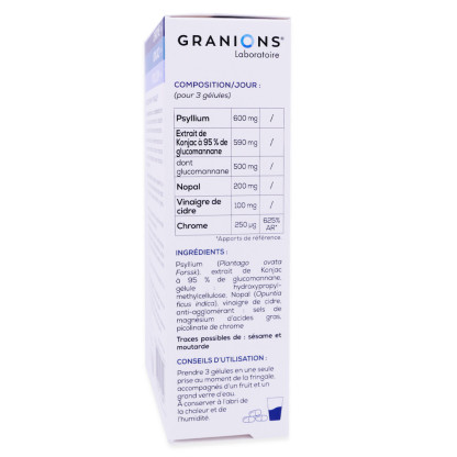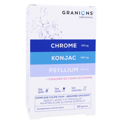 GRANIONS CHROME KONJAC PSYLLIUM 60 GÉLULES est disponible en vente en ligne sur le site de votre parapharmacie à prix discount.