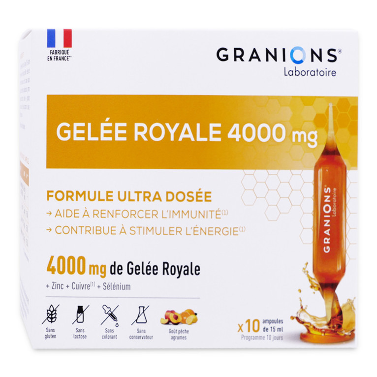 GRANIONS GELÉE ROYALE 4000MG AMPOULES 10X15ML est disponible en vente en ligne sur le site de votre parapharmacie à prix discount.