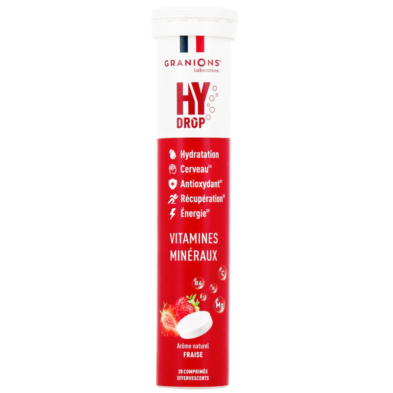GRANIONS HYDROP FRAISE 20 COMPRIMÉS EFFERVESCENTS est disponible en vente en ligne sur le site de votre parapharmacie à prix discount.
