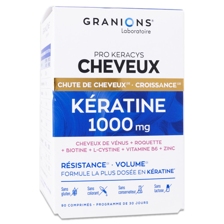 GRANIONS PRO KERACYS CHEVEUX KERATINE 1000MG 90 COMPRIMÉS est disponible en vente en ligne à prix discount sur Pharmashopdiscount