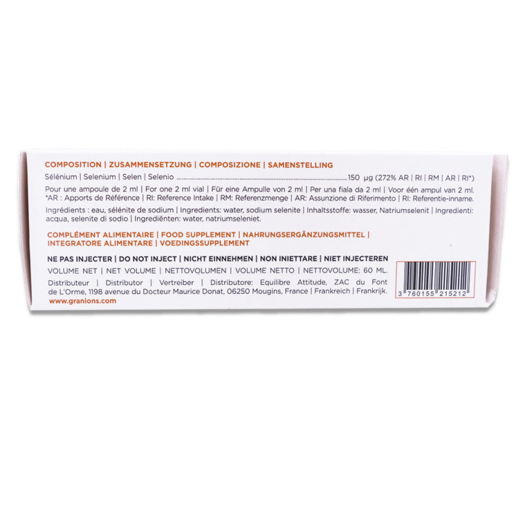 GRANIONS SÉLÉNIUM 150µG 30 AMPOULES est disponible en vente en ligne à prix discount sur Pharmashopdiscount.