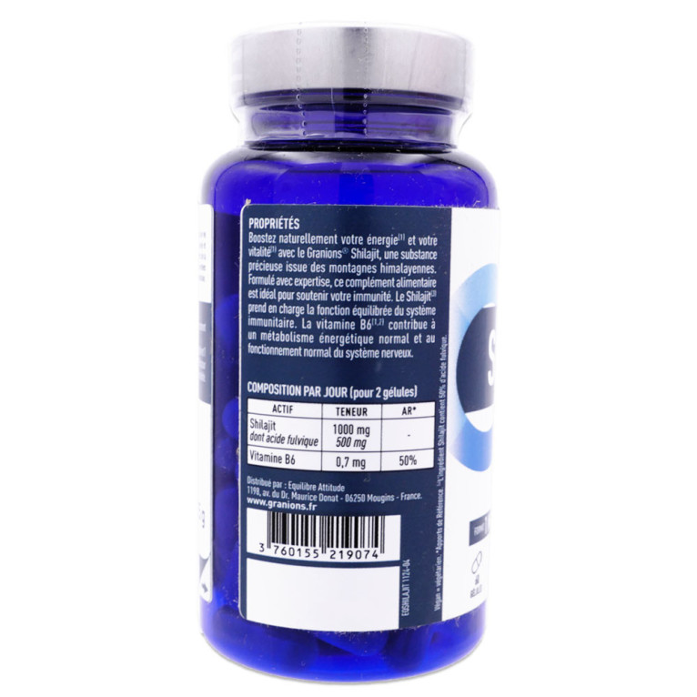 GRANIONS SHILAJIT 1000MG 60 GÉLULES est disponible en vente en ligne à prix discount sur Pharmashopdiscount.