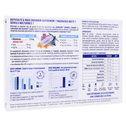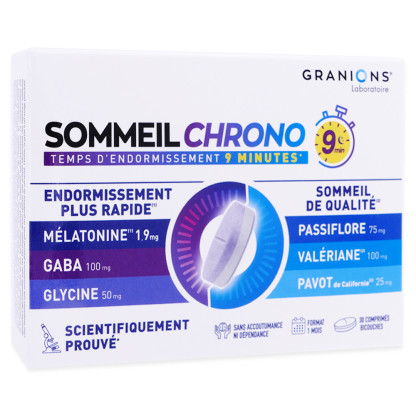 GRANIONS SOMMEIL CHRONO 30 COMPRIMÉS BICOUCHES est disponible en vente en ligne sur le site de votre parapharmacie à prix discount.
