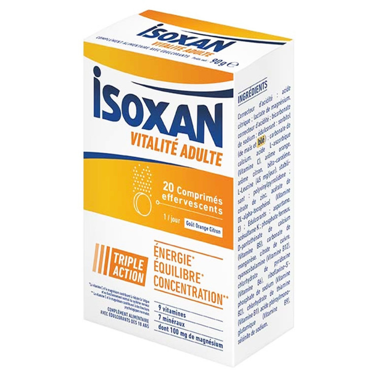 ISOXAN VITALITE ADULTE 20 COMPRIMES EFFERVESCENTS ORANGE CITRON, en vente en ligne sur le site de votre parapharmacie à prix discount