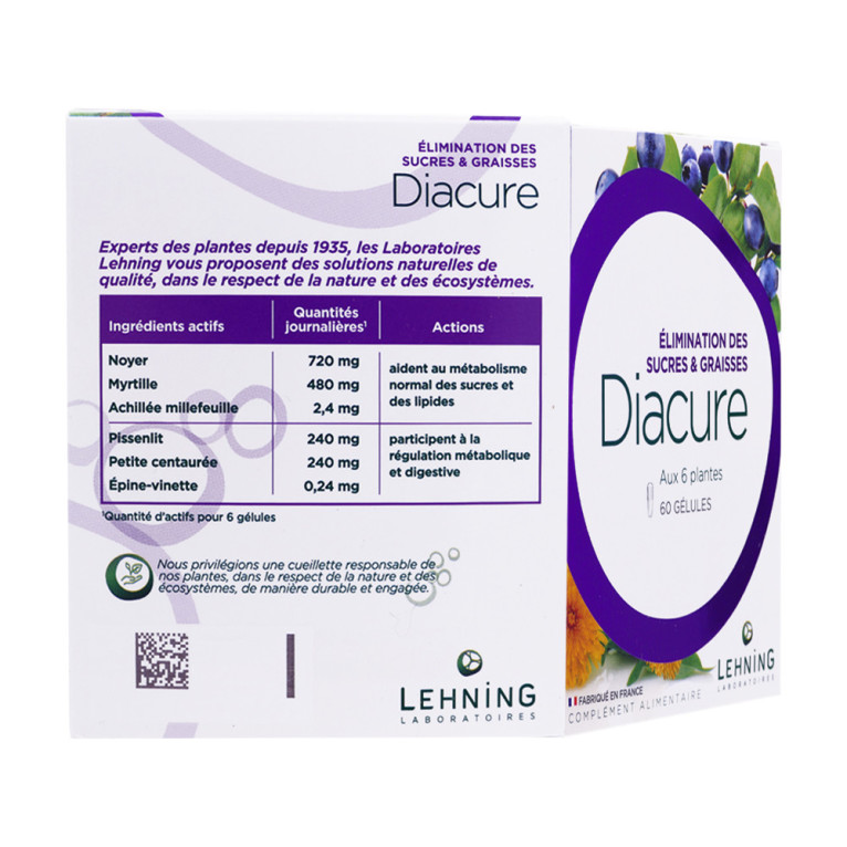 Le laboratoire Lehning, reconnu pour son expertise en phytothérapie, vous propose Diacure, un complément alimentaire formulé à partir d'un mélange synergique de plantes soigneusement sélectionnées.