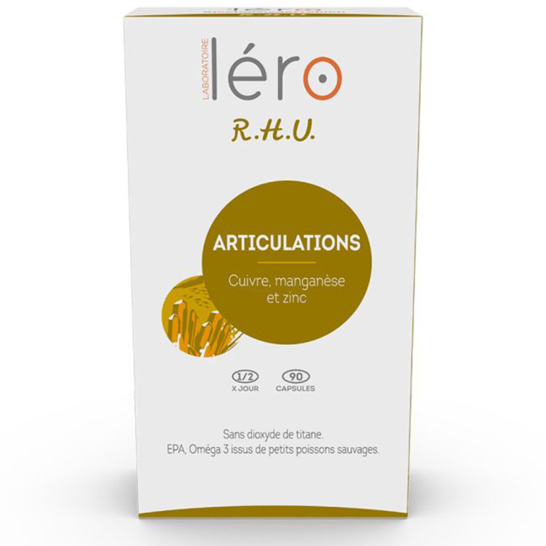 Le laboratoire LERO, expert en nutrition-santé, développe des compléments alimentaires associant des oméga 3 à des vitamines et des oligoéléments, afin d’offrir une efficacité optimale et contribuer au maintien du bien-être. LERO RHU du Laboratoire LERO est un complément alimentaire en capsules. Sa formule est composée de manganèse et de zinc qui participent au maintien du capital osseux, de cuivre qui favorise le maintien des tissus conjonctifs normaux et de la vitamines B6 pour aider au métabolisme normal des protéines et du glycogène. Enfin la vitamine E, le Zinc et le sélénium sont associés pour contribuer à la protection des cellule contre le stress oxydatif. Un apport en EPA (oméga 3 issu d’huile de poisson) complète la formule.