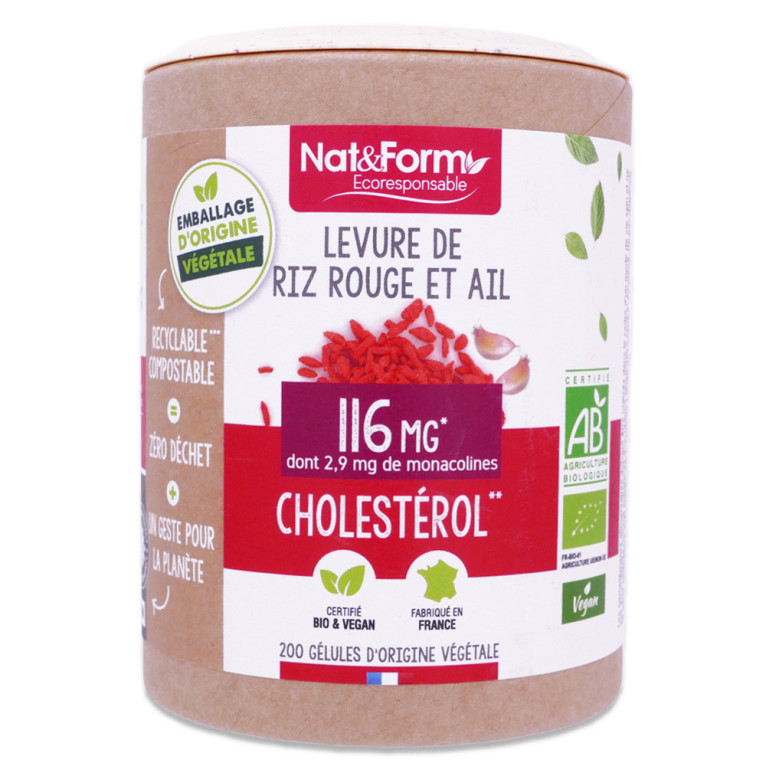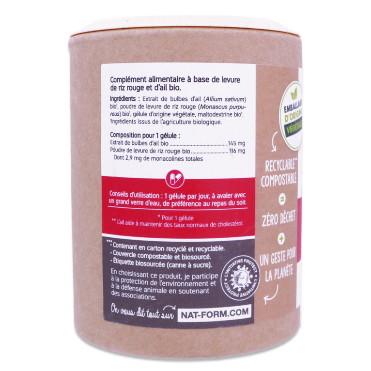 Le laboratoire Nat&Form s'engage dans une démarche éco-responsable en proposant des compléments alimentaires de qualité. La levure de riz rouge est reconnue pour sa teneur en monacoline K. L'ail, quant à lui, soutient la fonction du cœur et des vaisseaux en favorisant la bonne circulation du sang grâce à ses composés actifs. L'ail va également participer à l'équilibre des lipides dans le sang et renforcer les défenses naturelles. Ces ingrédients sont issus de l'agriculture biologique, garantissant un produit respectueux de l'environnement et de votre organisme. Profitez des avantages de ce complément alimentaire pour soutenir votre organisme au quotidien.
