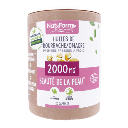 Les capsules d'huiles de bourrache et d'onagre de la marque Nat&Form sont formulées pour apporter à votre corps les acides gras essentiels dont il a besoin.