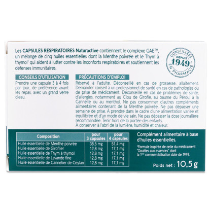 NATURACTIVE CAPSULES RESPIRATOIRES GAE 30 CAPSULES est disponible en vente en ligne à prix discount sur Pharmashopdiscount.