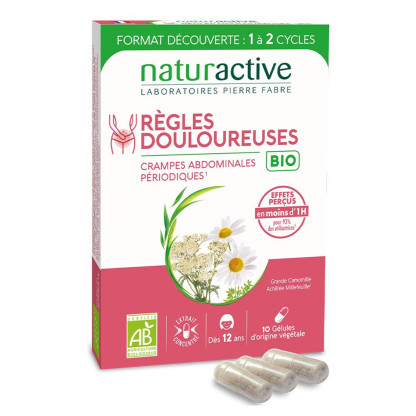 NATURACTIVE REGLES DOULOUREUSES BIO 10 GELULES en vente en ligne sur le site de votre parapharmacie à prix discount est un produit naturellement efficace pour les femmes ayant des douleurs menstruelles.