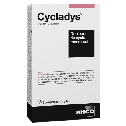 NHCO CYCLADYS DOULEURS CYCLE MENSTRUEL 45 COMPRIMES est disponible en vente en ligne sur le site de votre parapharmacie.