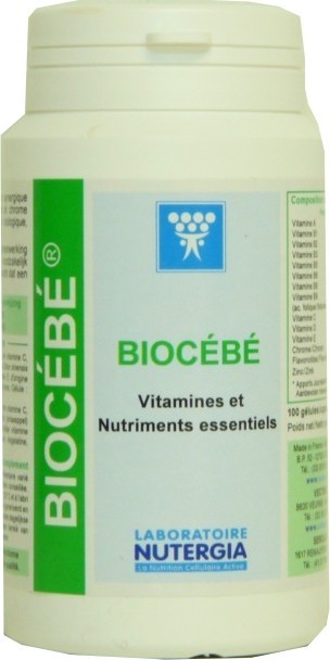 Le laboratoire Nutergia développe des compléments nutritionnels de haute qualité aux formules scientifiquement équilibrées et adaptées aux besoins de l’organisme, selon un concept totalement novateur : la nutrition active cellulaire. Il s’agit de rééquilibrer l’organisme en restaurant le bon fonctionnement des cellules par l’apport de micronutriments sélectionnés pour leur qualité et leur efficacité. Les produits Nutergia sont élaborés à partir d’huiles vierges première pression à froid, de plantes biologiques ou de culture sauvage et garantis sans OGM. BIOCÉBÉ du Laboratoire NUTERGIA est un complément alimentaire conditionné sous forme de capsules, composé de vitamines et de nutriments essentiels au bon fonctionnement de l’organisme. La formule de BIOCÉBÉ associe de la vitamine A anti-oxydante qui agit de façon bénéfique sur la vue, la croissance osseuse, la peau et protège l’organisme des infections, de la vitamine D qui préserve le capital osseux, des vitamines du groupe B qui favorisent l'influx nerveux et la gestion du stress, de la vitamine E anti-oxydante qui protège le système cardiovasculaire, de la vitamine C qui limite les risques d’infection et combat les états de fatigue, des citroflavonoïdes aux bienfaits sur l’appareil circulatoire, du gluconate de zinc qui participe au bon fonctionnement cellulaire et du chlorure de chrome qui intervient sur le métabolisme des glucides, des protéines et des lipides.