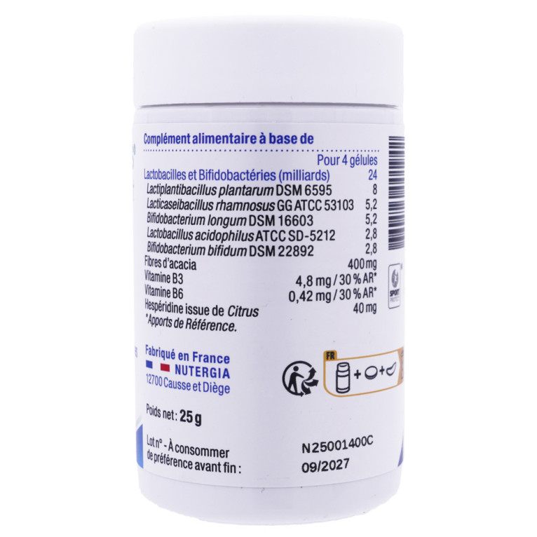 Le laboratoire Nutergia, reconnu pour son expertise en micronutrition, propose avec la gamme ERGYPHILUS un complément alimentaire qui soutient le confort intestinal. Ce produit contient 5 souches de probiotiques, apportant 6 milliards de micro-organismes vivants par gélule. Les probiotiques contribuent à l'équilibre de la flore intestinale, essentiel pour le bon fonctionnement du système digestif. La formule inclut également de la vitamine B3, qui participe au maintien des muqueuses normales, favorisant ainsi un environnement intestinal sain.