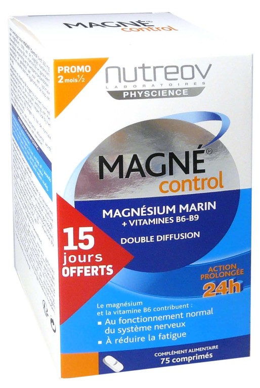 MAGNE CONTROL de NUTREOV PHYSCIENCE, un complément alimentaire conditionné sous forme de comprimés à base de magnésium marin et de vitamines B6 disponible dans votre parapharmacie en ligne à prix discount.