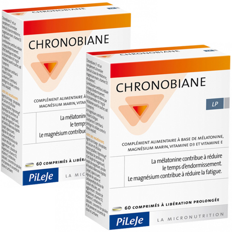 Chronobiane LP est un complément alimentaire sous forme de comprimés qui contient 1mg de mélatonine par comprimé qui est une hormone issue de la glande pinéale se situant dans le cerveau, ainsi que de vitamines D3 (issue de lanoline de mouton) et E associées à du magnésium. La mélatonine au delà de 1mg favorise un sommeil normal, participe à s'endormir de façon naturelle. Elle contribue à la réduction des effets du décalage horaire dès 0.5mg.Le magnésium contribue également à réduire la fatigue.