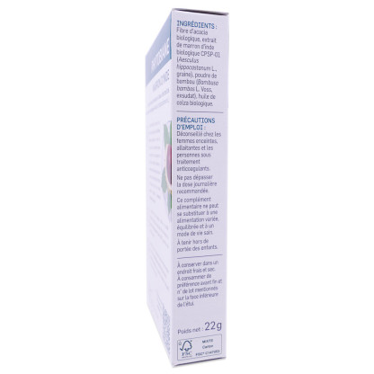 Fibre d'acacia biologique, extrait de marron d'Inde biologique CPSP-01 (Aesculus hippocastanum L., graine), poudre de bambou (Bambusa bambos L. Voss, exsudat), huile de colza biologique..