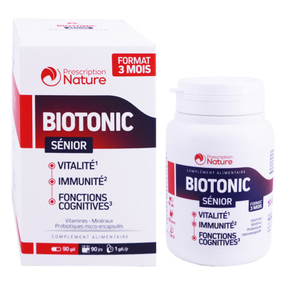 PRESCRIPTION NATURE BIOTONIC SENIOR 90 GELULES est un complément alimentaire en vente en ligne sur le site de votre parapharmacie à prix discount.