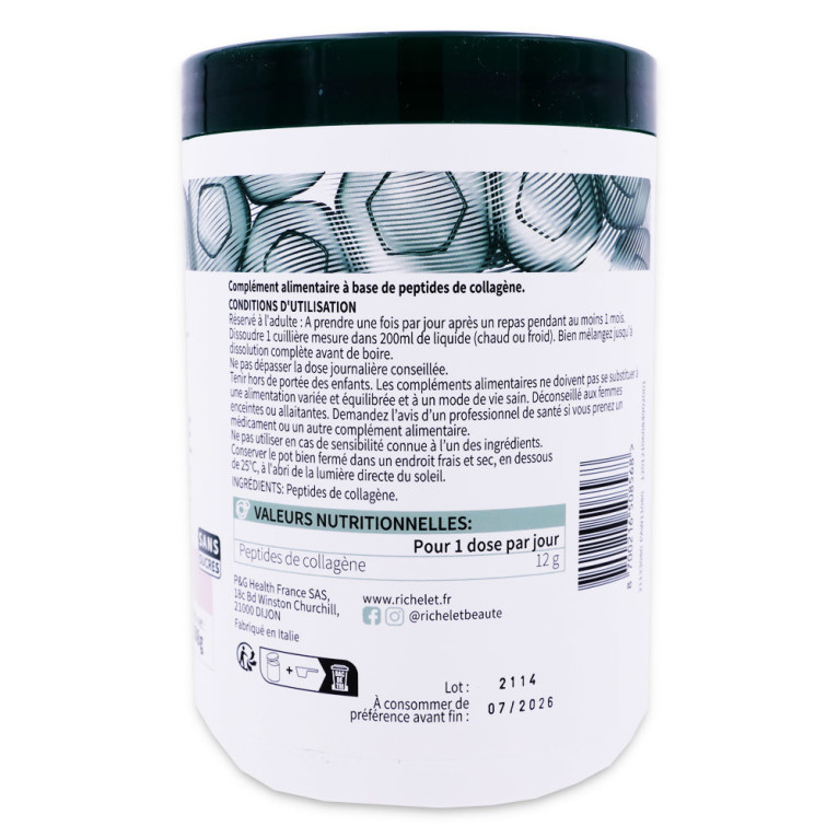 Ce produit du laboratoire Richelet se compose de peptides de collagène de haute qualité.