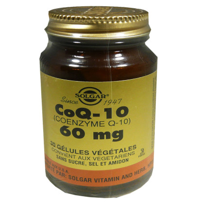COQ-Q10 Coenzyme Q10 60mg de SOLGAR, la qualité SOLGAR en gélules dans votre parapharmacie en ligne à prix discount, le complément alimentaire d'apport en Coenzyme Q-10 Ubiquinone.